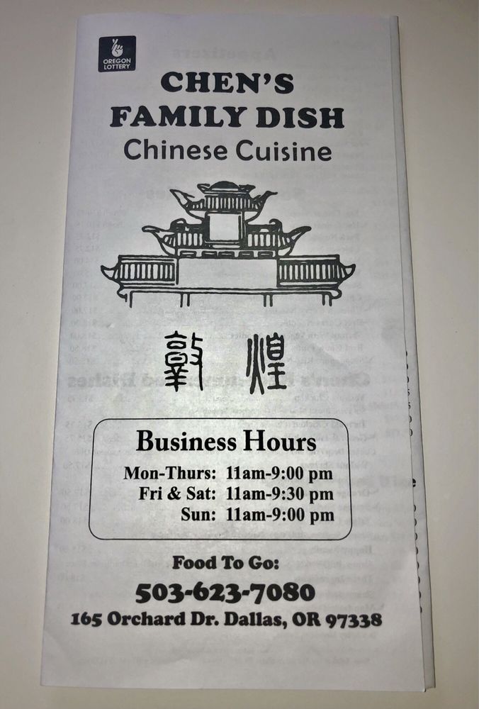 Chen's Family Dish is a Chinese restaurant located at 165 Orchard Dr in Dallas, Oregon. This family-friendly establishment offers a variety of vegetarian options and caters to groups and families. With amenities like Wi-Fi, outdoor seating, and gender-neutral restrooms, it provides a comfortable dining experience. The menu includes traditional Chinese dishes with a modern twist, perfect for both lunch and dinner. Chen's Family Dish also offers delivery and takeout options, making it convenient for those on the go. The casual and quiet ambiance, along with the availability of beer and wine, ensures a relaxing dining experience for all guests. The restaurant also provides catering services for special events. Overall, Chen's Family Dish is a welcoming spot for Chinese cuisine enthusiasts looking for a diverse menu and a cozy atmosphere.